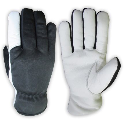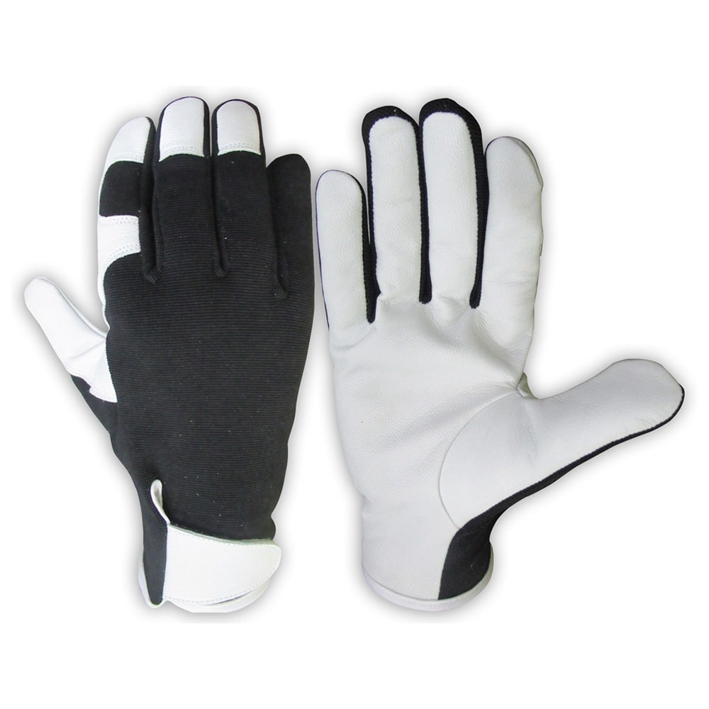 Natural Goat Skin Leather Palm, Polyester Spandex Back, Polyester Binding on Wrist, Velcro Closure on Wrist